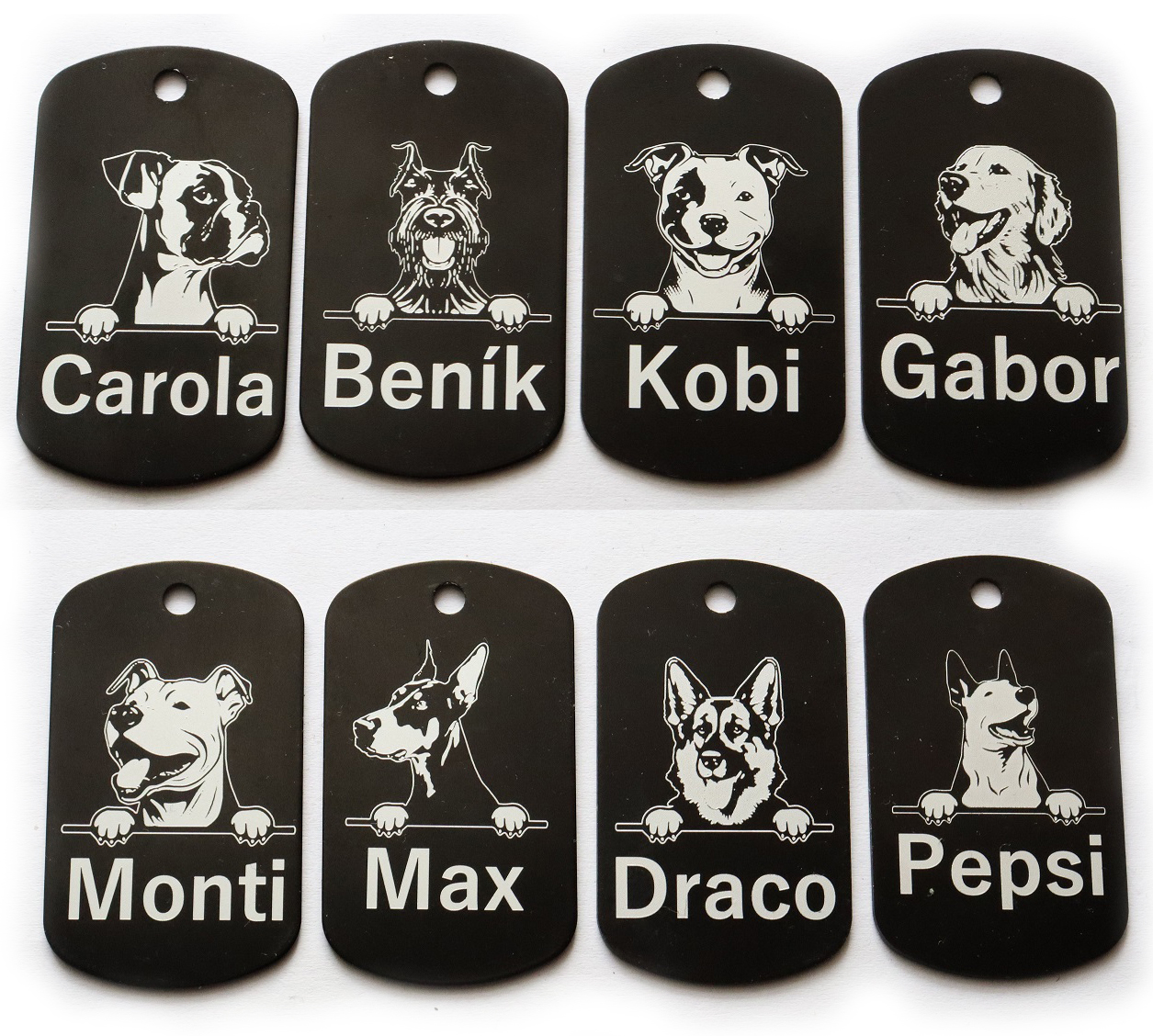 Dnes jsme gravírovali lehčené psí známky s detailními obrázky psů.