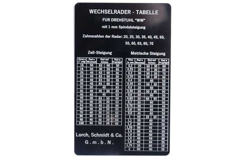Precizně gravírovaný štítek výměnných kol pro soustruh Lorch, vytvořený s maximální přesností a důrazem na detail. Rozměr 86×54 mm, tloušťka 0,5 mm. Odolný fiber gravírování zaručuje jemné detaily, vysokou čitelnost a dlouhou životnost i v náročném provozu. Nabízíme možnost výroby štítků až do velikosti 170×270 mm dle vašeho zadání.