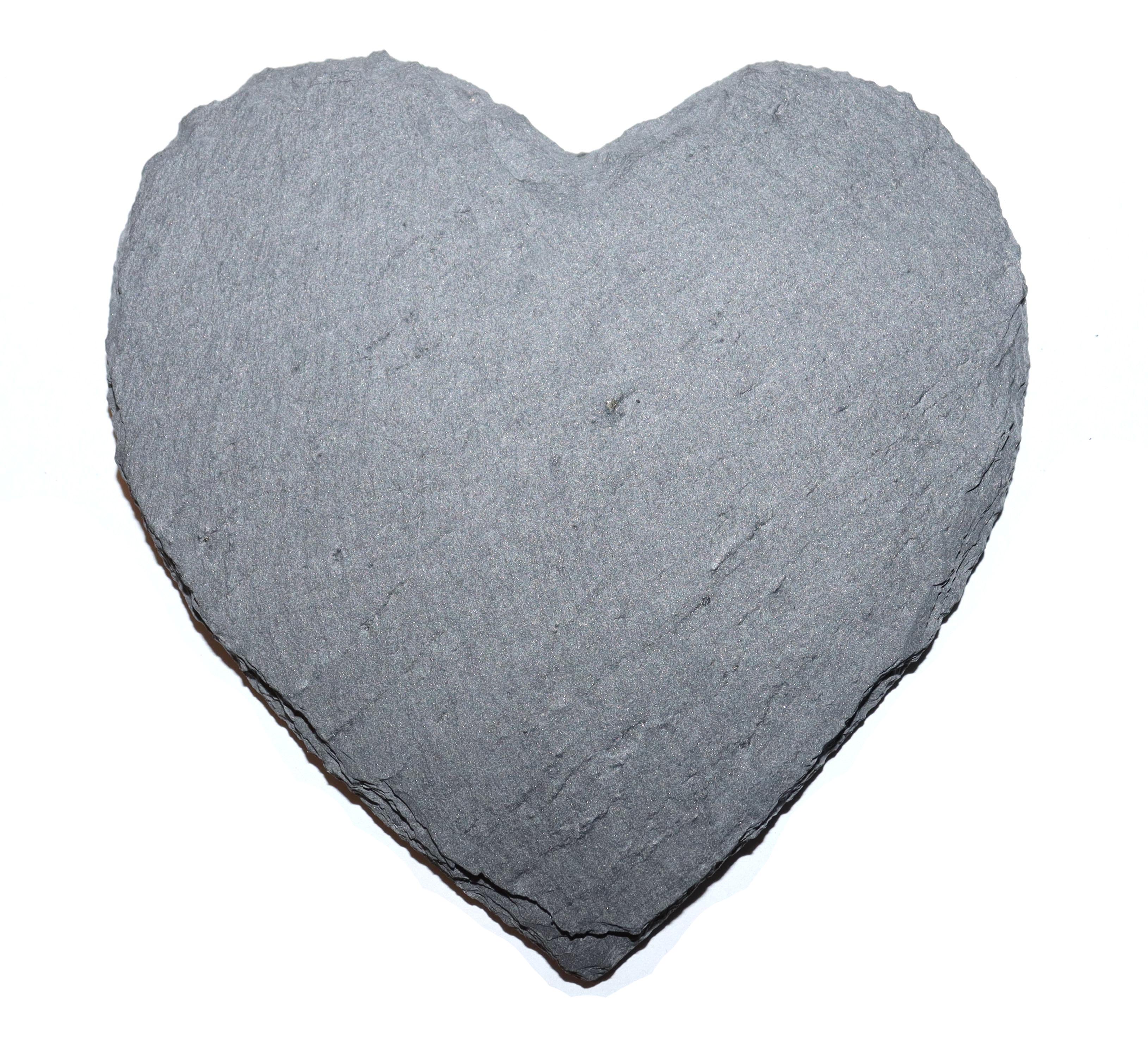 Dekorativní tvar srdce z přírodní břidlice – ideální pro osobní dárky, jména, nápisy nebo svatební motivy. Rozměr 100 × 100 mm.